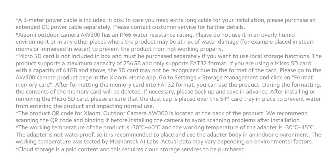 Xiaomi Outdoor Camera AW300 Main Features